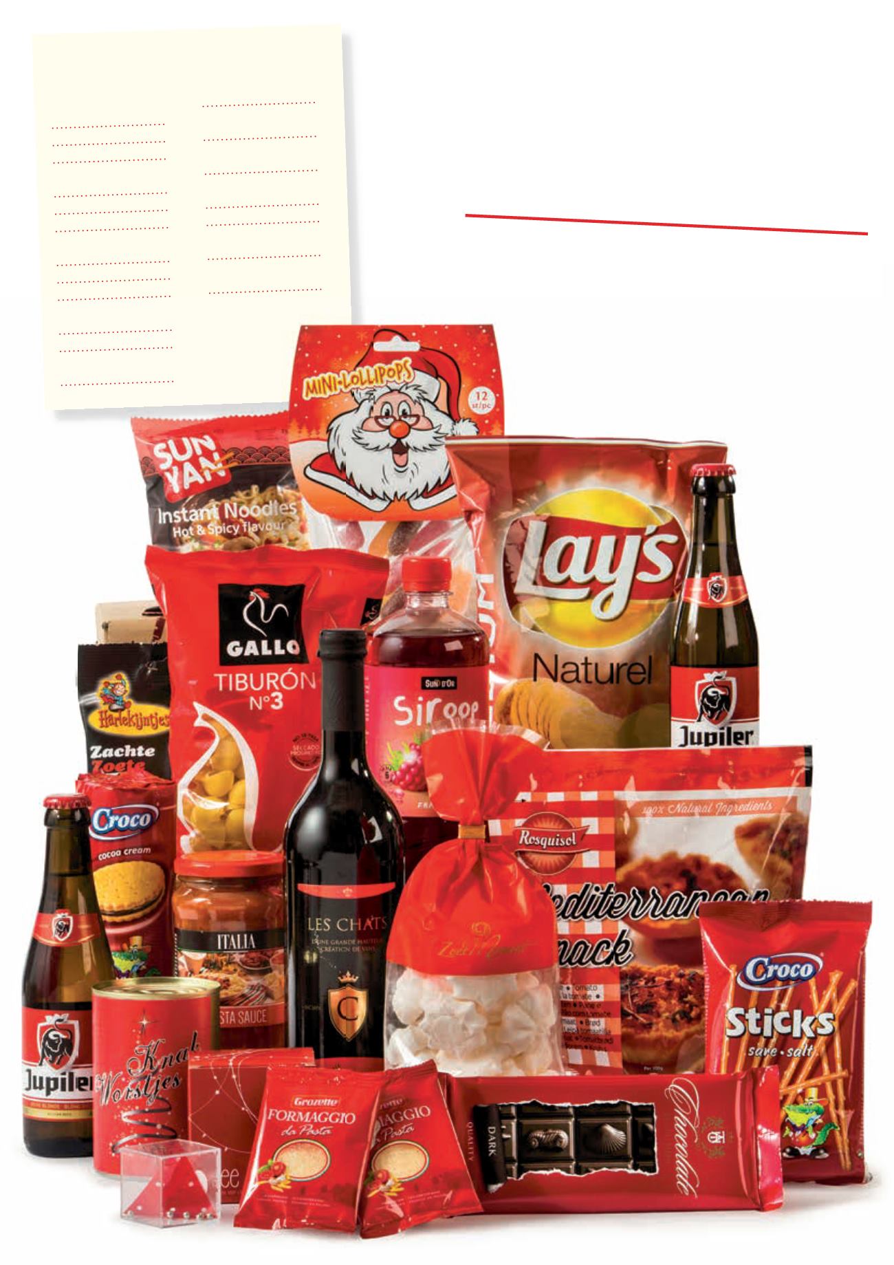 Dit vrolijk kerstrood gekleurde familie pakket bevat
